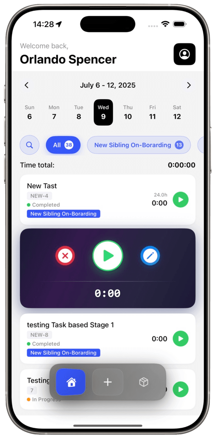 Track time, tasks, and inventory updates while work is underway so office and production stay aligned.